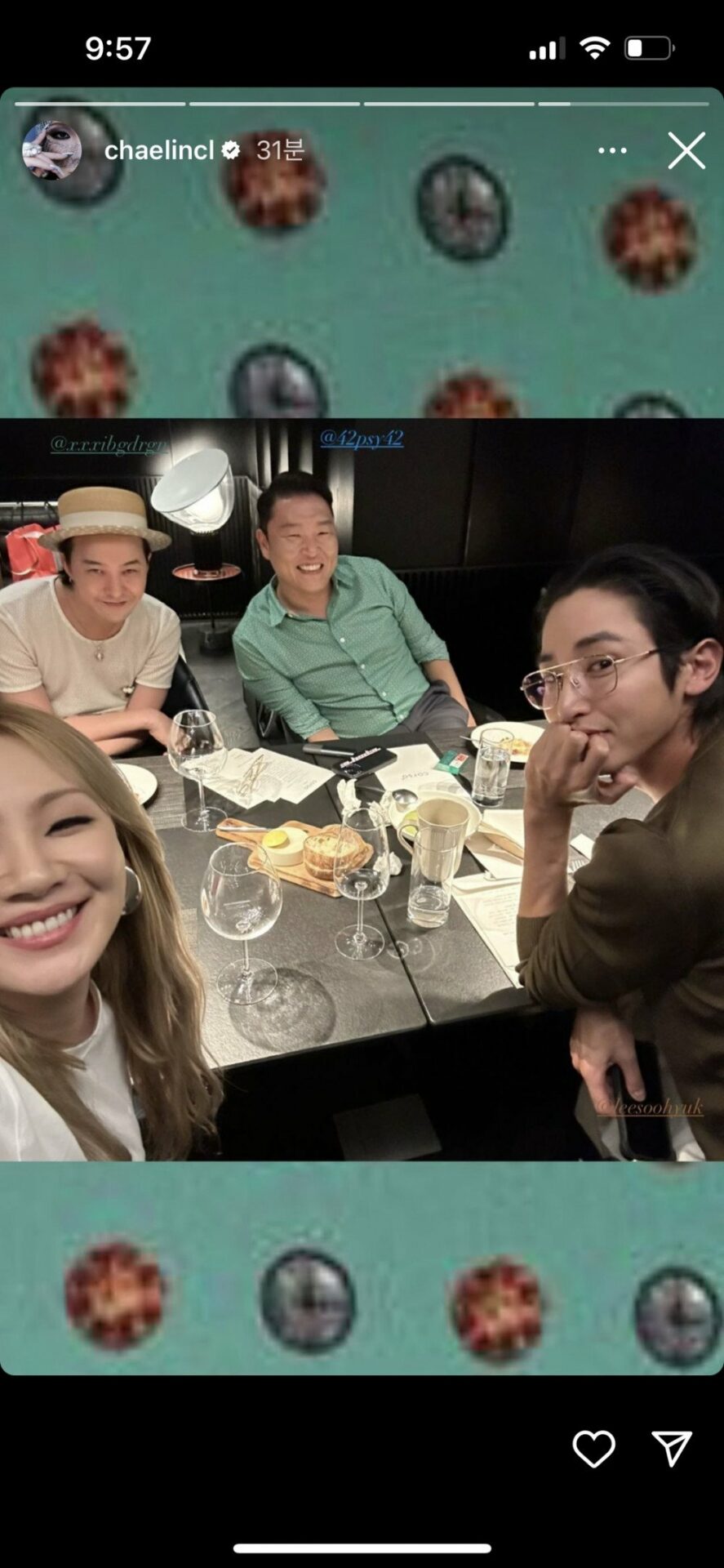 Sur un forum en ligne, les internautes se remémorent avec nostalgie l’ancienne famille YG à la suite d’une photo récemment publiée par CL sur sa page Instagram personnelle. Sur la photo, on peut la voir poser aux côtés de G-Dragon, Psy et de l’acteur Lee Soo Hyuk, dévoilant ainsi leurs liens toujours solides. Dans un cadre élégamment aménagé, les quatre d’entre eux sont en train de déguster leurs boissons accompagnées de légers amuse-gueules, chacun affichant son propre style.