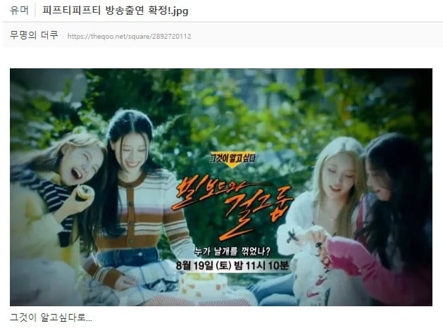 Sur un forum en ligne, un internaute a publié un message intitulé « FIFTY FIFTY sera officiellement diffusé à la télévision !.jpg ». En accédant à la page, vous découvrirez le nom et l’image de l’épisode, qui s’avère être pour « Questions sans Réponse », le prestigieux programme de la SBS connu pour ses enquêtes approfondies sur les mystères non résolus et les questions socialement et religieusement controversées.