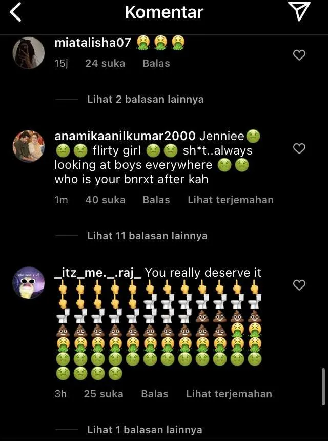 Malheureusement, certains fans ne sont pas d’accord avec la relation et sont allés harceler la membre de BLACKPINK. Sur l’Instagram de Jennie, on peut maintenant voir plusieurs commentaires d’insultes, de haine et d’émoticônes injurieuses envers l’idole.