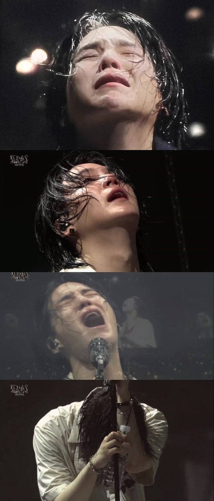 Après la performance finale de la tournée mondiale « D-Day » de SUGA à Séoul, des vidéos et des photos de cet instant émouvant ont rapidement circulé en ligne. Les fans ont particulièrement remarqué SUGA se laissant submerger par l’émotion et éclatant en larmes pendant sa performance. Une photo montrant SUGA en train de pleurer lors de son concert a été partagée sur un forum en ligne par un internaute, accompagnée du commentaire : « Soupir, il pleure vraiment tristement. » Sur la photo, SUGA est vu regardant le plafond, le visage crispé par l’émotion de son cri silencieux. L’internaute a ajouté : « Petit chat, ne souffre pas trop TTTT. »